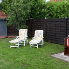- großer Garten (Schaukel, Sandkasten, Bollerwagen, Gartenhaus, Gartenmöbel, Strandkorb, Grill)